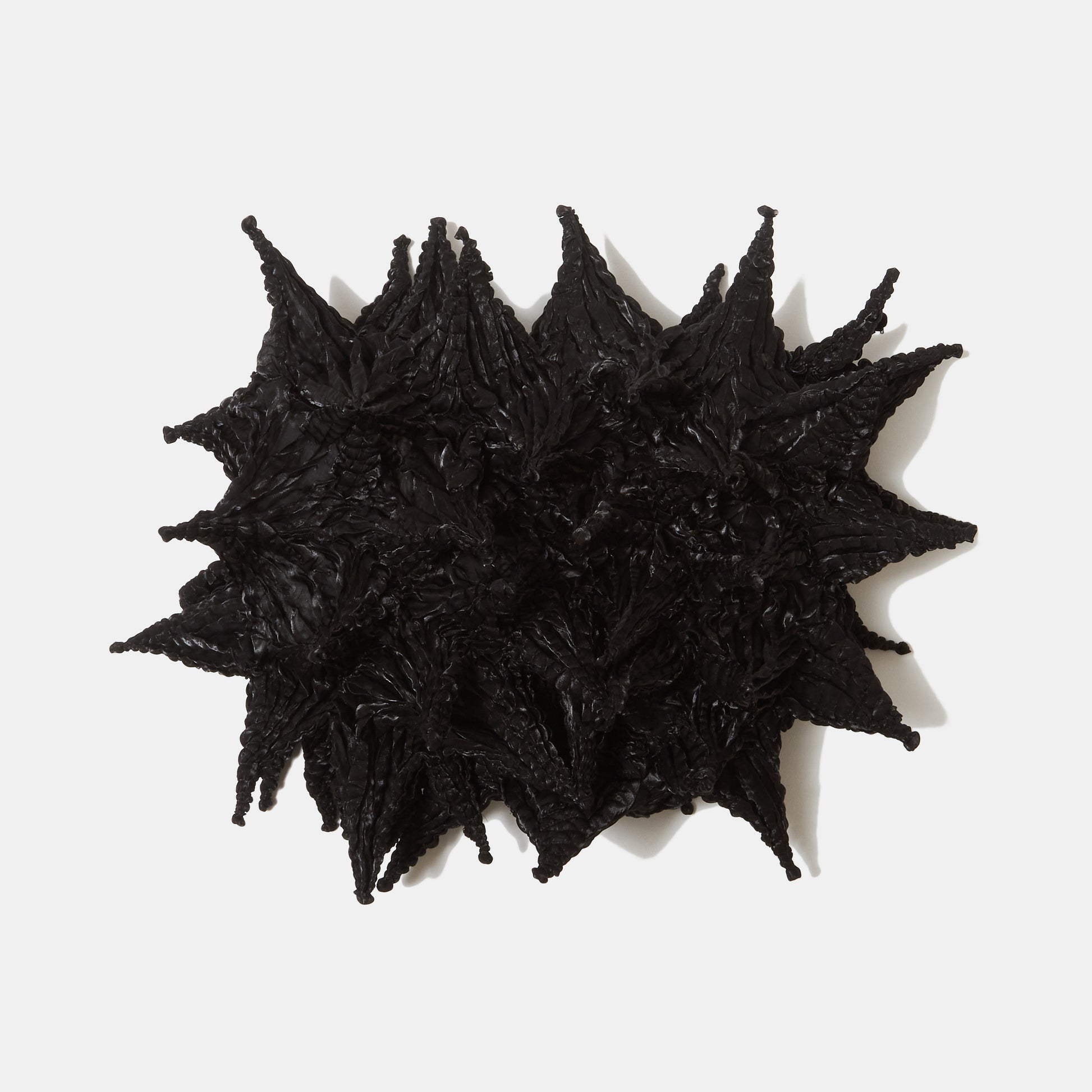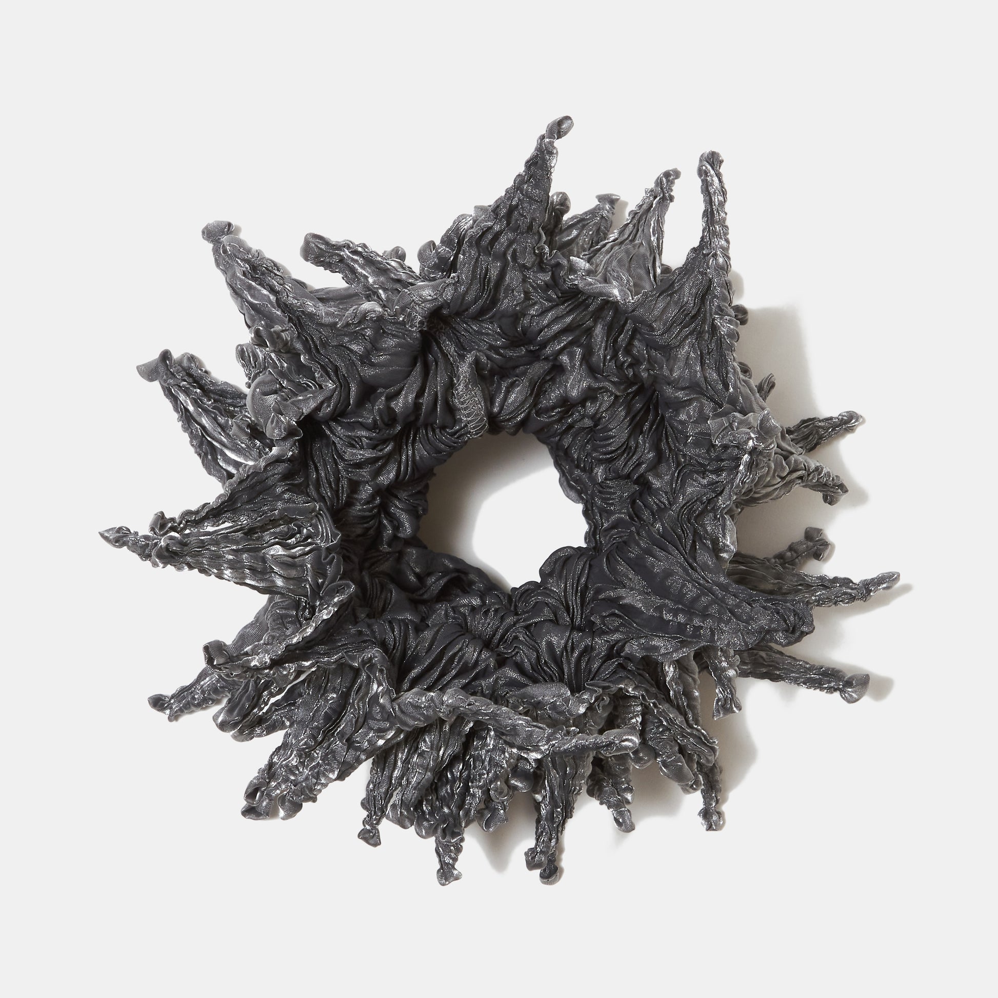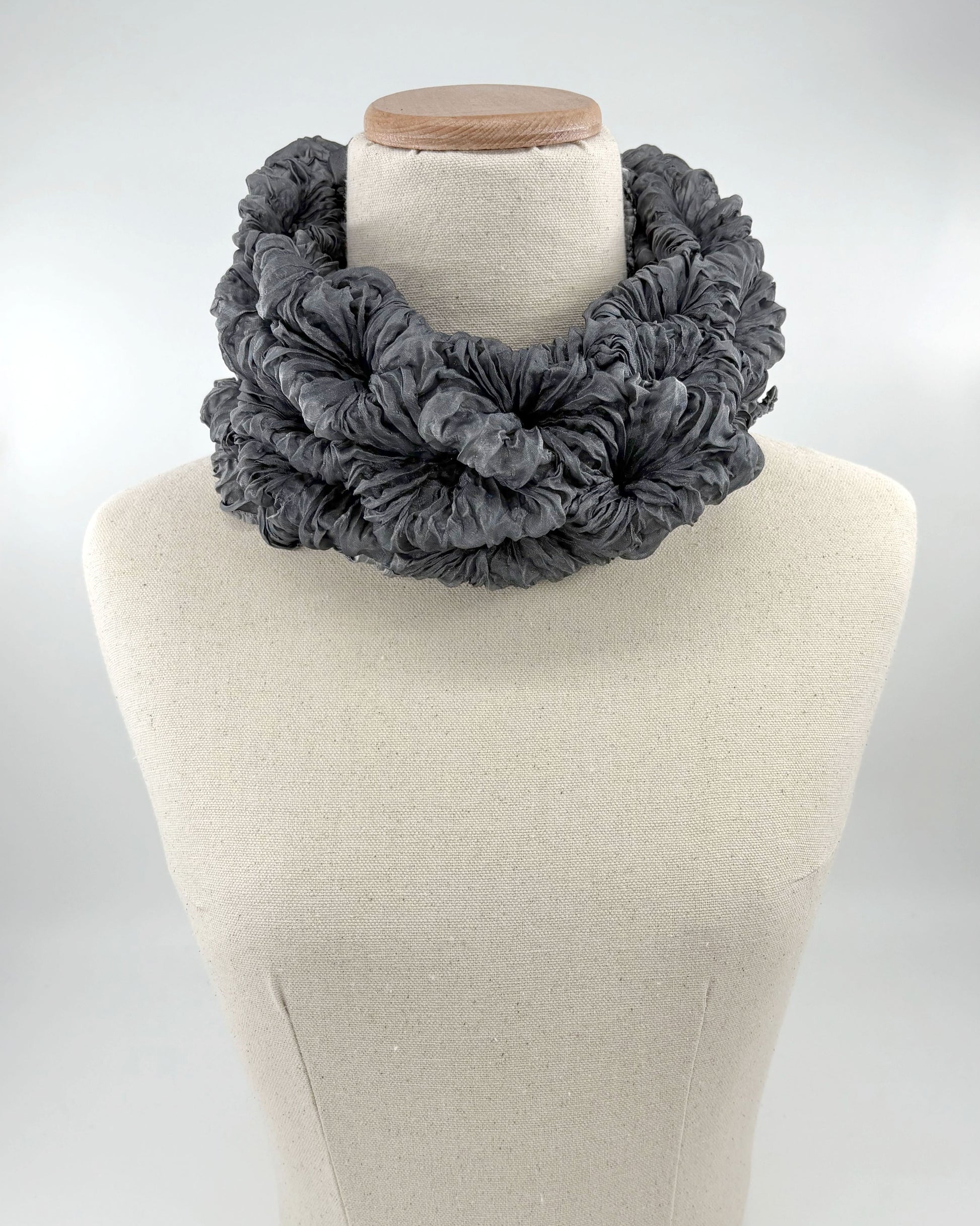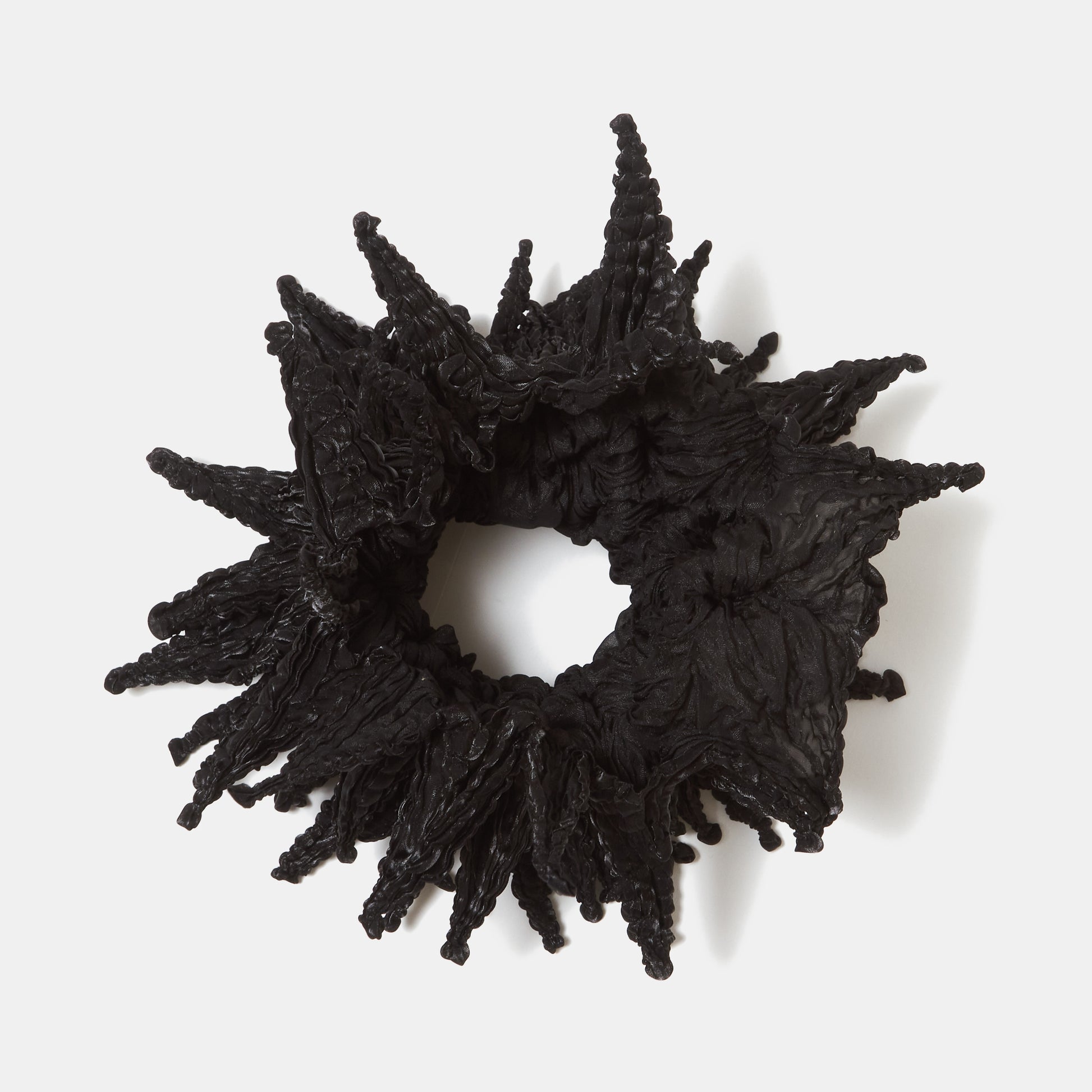 Bunzaburo's unique necklace is made with polyester chiffon and has their signature large shibori spikes (Bai Shibori). Gently stretch it and pass it from your head to your neck. You can wear it inside out, which gives a quite different impression.