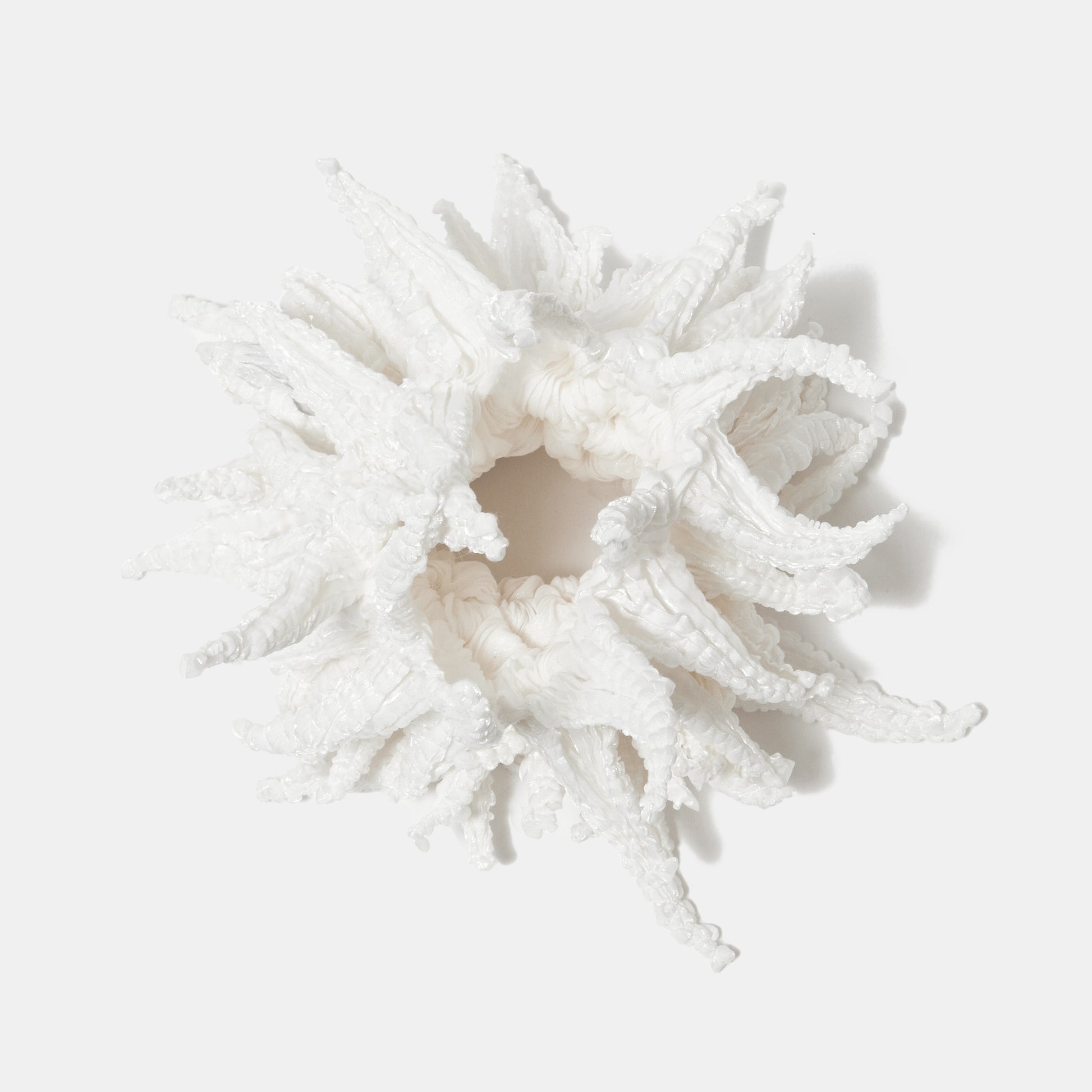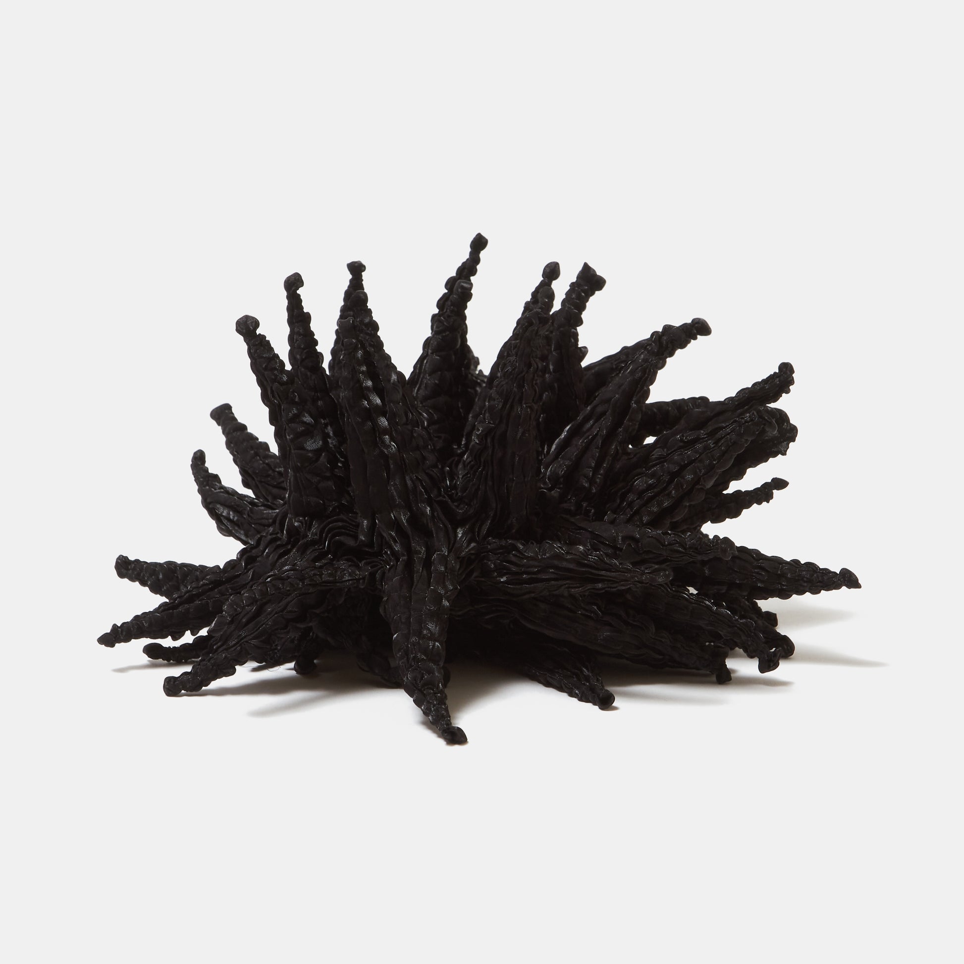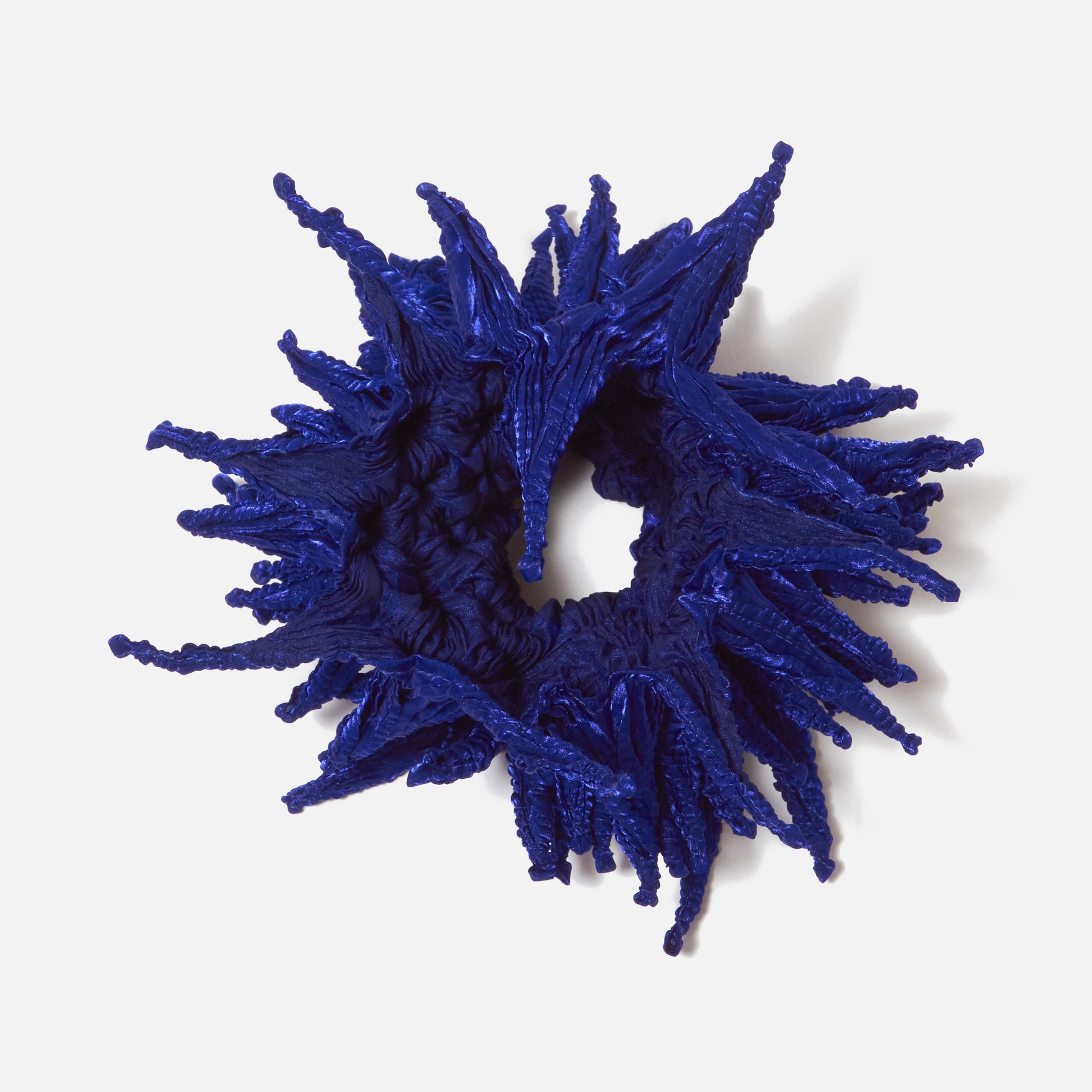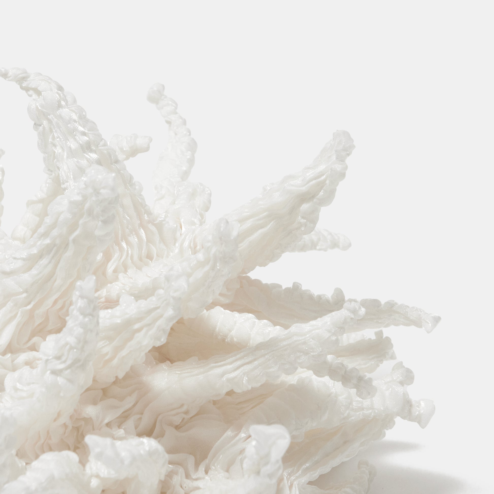 Bunzaburo's unique necklace is made with polyester chiffon and has their signature large shibori spikes (Bai Shibori). Gently stretch it and pass it from your head to your neck. You can wear it inside out, which gives a quite different impression.