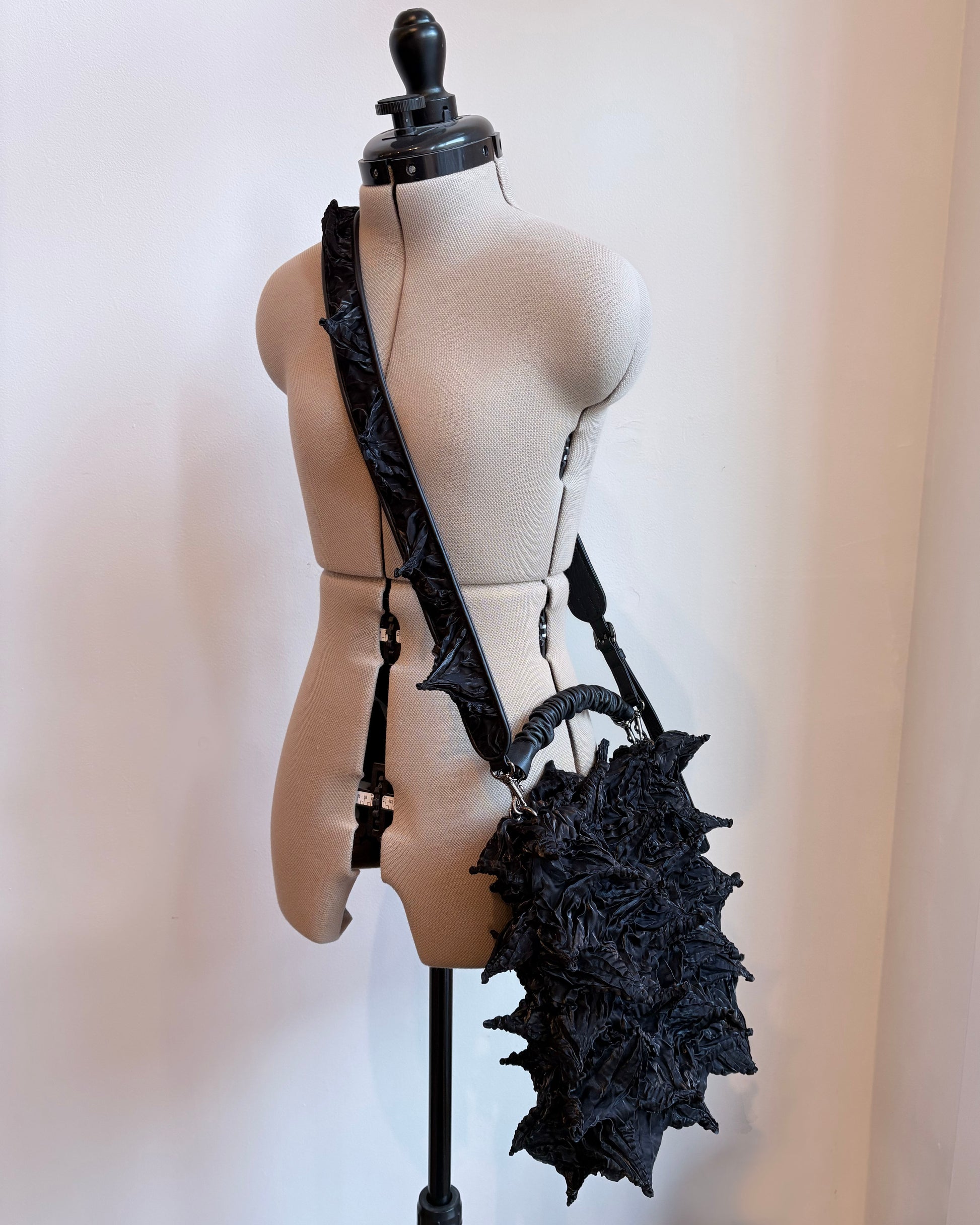 Edgy yet functional, this new bag from BUNZABURO is a must-have. Meticulously made by artisans in Japan.